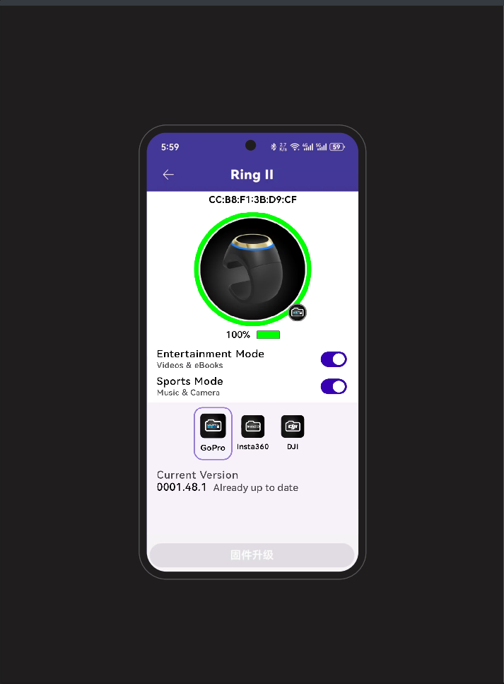 APP can view Ring II battery level and version information, supports FW upgrade: